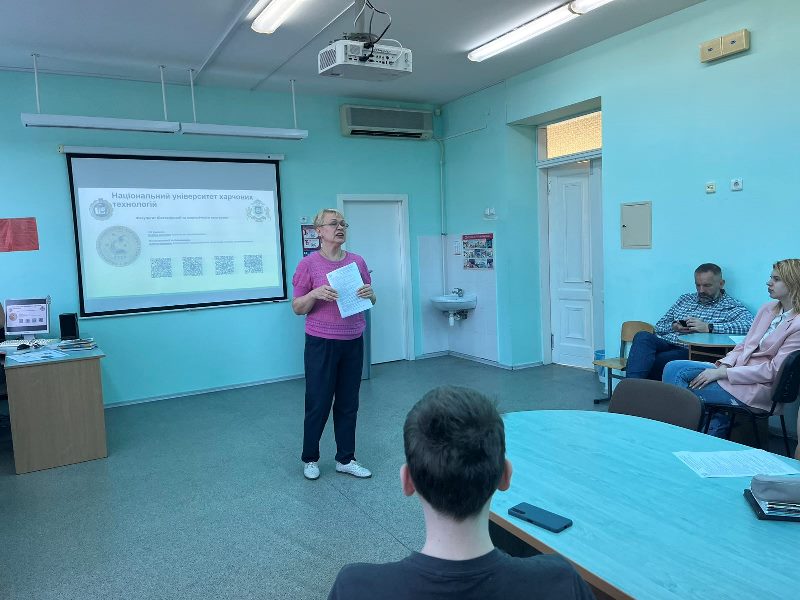 З учнями двох 11 класів у конференц-залі навчального закладу плідно поспілкувалися завідувач кафедри біотехнології і мікробіології, д.т.н., професор Віктор Стабніков, відповідальна за профроботу цієї ж кафедри, асистентка Ірина Ковшар, доцентка кафедри економіки праці та менеджменту Олена Безпалько та методистка Підготовчого відділення Маргарита Панасевич.