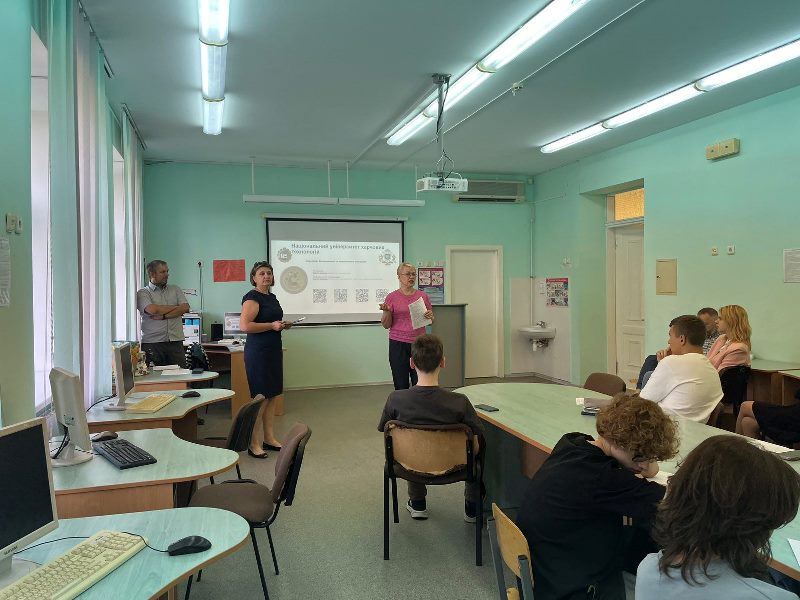 Одинадцятикласники уважно слухали наших представників та ставили запитання, на які отримали вичерпні відповіді. Наприкінці зустрічі вони отримали інформаційні матеріали про НУХТ і підготовче відділення та були запрошені долучатися до всіх активностей університету і навчальних підрозділів, що проводяться для вступників.