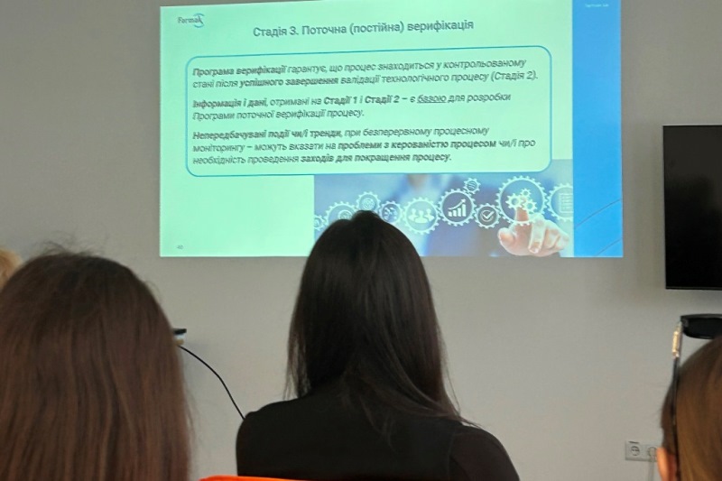 Друга частина доповіді була присвячена технологічним аспектам фармацевтичного виробництва, зокрема темі валідації та кваліфікації технологічних процесів відповідно до вимог GMP.