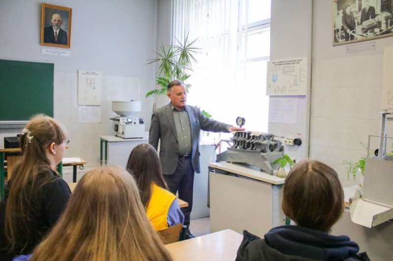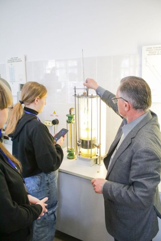 Далі гості університету занурилися у практичний світ харчових і біотехнологічних виробництв разом із фахівцями кафедри процесів і апаратів харчових виробництв, професором Володимиром Зав’яловим і доцентом Тарасом Мисюрою. Вони продемонстрували схеми апаратів, що знаходяться в лабораторіях, детально пояснили їх призначення та розповіли про їх складові частини. Це дало можливість краще зрозуміти принципи роботи та функціонування цих важливих інструментів біотехнологічної та харчової промисловості. У лабораторіях кафедри учасники Біотехнологічних студій мали змогу на власні очі побачити дослідницький процес в дії і взяти участь у науковому експерименті. Завершальним акордом став виступ випускника НУХТ Валентина Чорного, який у грудні 2023 року успішно захистив дисертацію на здобуття освітньо-наукового ступеня доктора філософії. Валентин поділився з учасниками своєю історією успіху, мотивуючи їх до наполегливої праці та здобуття нових знань.
