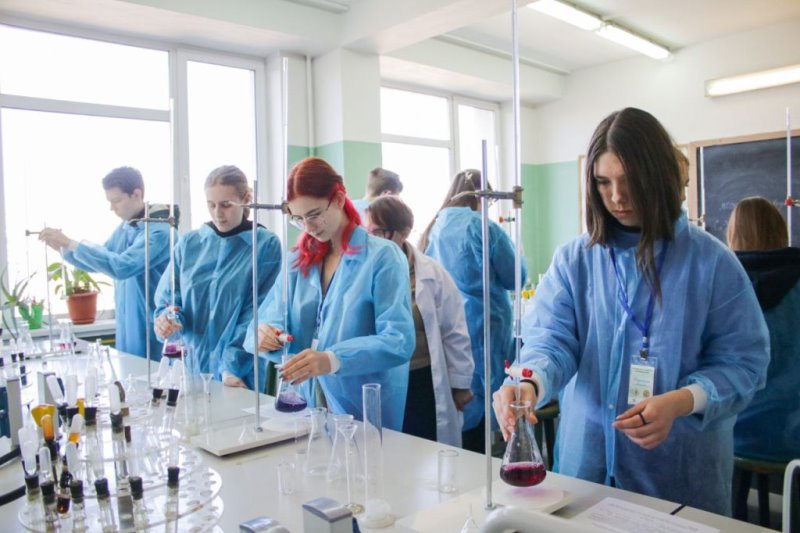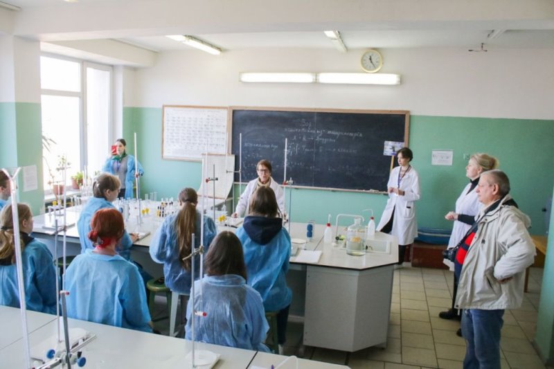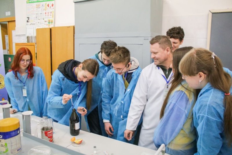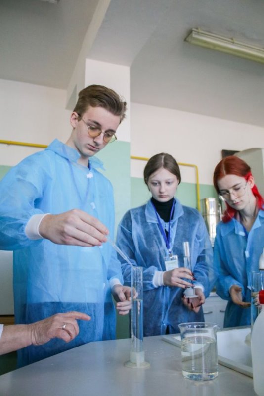 Спочатку учасники проєкту відвідали кафедру харчової хімії. Там їх гостинно зустріли доценти Віра Іщенко, Олександр Макаренко та Тетяна Петренко й запропонували дослідити жорсткість води за допомогою титриметричного аналізу. Під час проведення дослідження викладачі розповідали про нюанси цього процесу та цікаві факти з хімії.