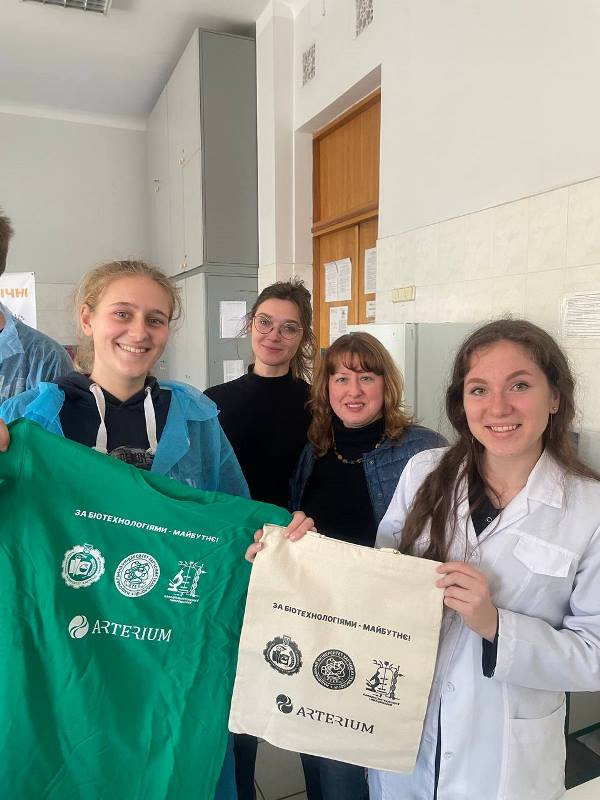 Висловлюємо подяку фармацевтичній компанії «Артеріум», яка вже не перший рік підтримує проєкт «Біотехнологічні студії НУХТ». Завдяки допомозі команди підприємства, молодь отримує можливість розвиватися, поглиблювати свої знання та практичні навички, а також долучатися до досліджень у сфері біотехнології.