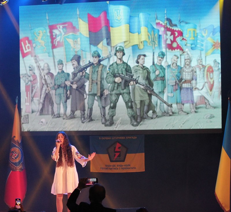 Концертну програму відкрив Богдан Сергієко, проникливо виконавши а капела «Пливе кача». Прозвучали: «Слава нашим ЗСУ» у виконанні Діани Чернявської, «Зродились ми» у виконанні Надії Магден, «Моя країна» у виконанні Павла Мельничука, «А я люблю солдата» від дуету «Оренда», «Кульбабове вино» від гурту «DYVY», «Іду вперед» у виконанні Богдана Сергієнка, «Моя любов» у виконанні Вікторії Доктор, «Під облачком» від Дарини Комаровських, «Козацький дух» у виконанні Ольги Орендарчук, «Вільна» від Дарини Лебедюк, «Вишневий садок» у виконанні Романа Сильчука, «Ой, не світи місяченьку» від Тетяни Машовець, «A Cruel Angel Thesis» у виконанні Анастасії Костіної, «Castle on the Hell» від Олексія Рибіна, «Радіохвилі» у виконанні Анастасії Ткачук, «Марш нової армії» у виконанні Владислава Ключникова.