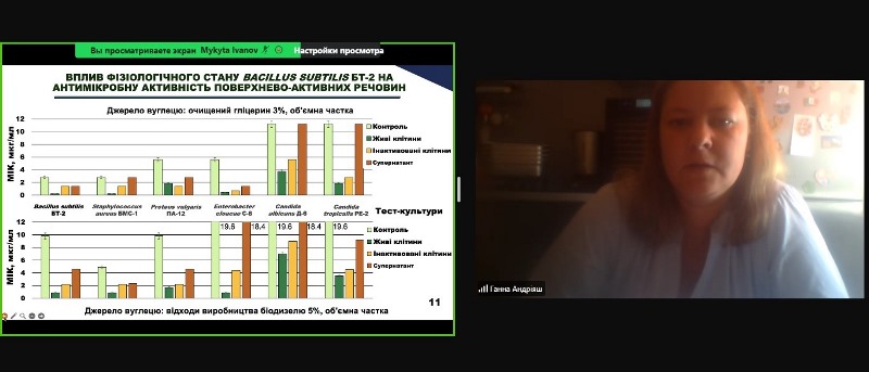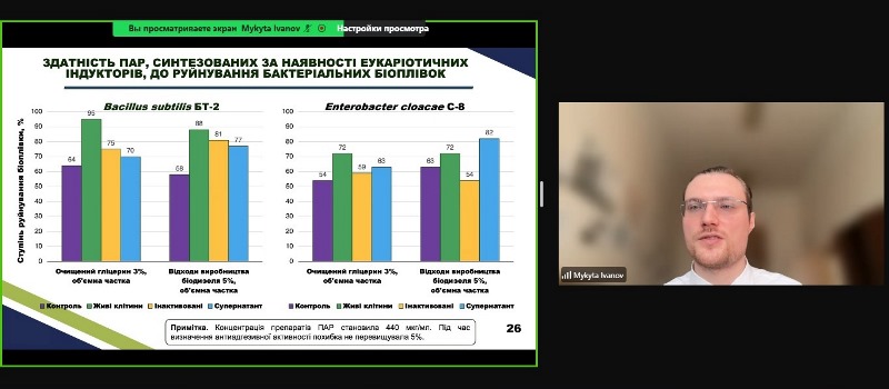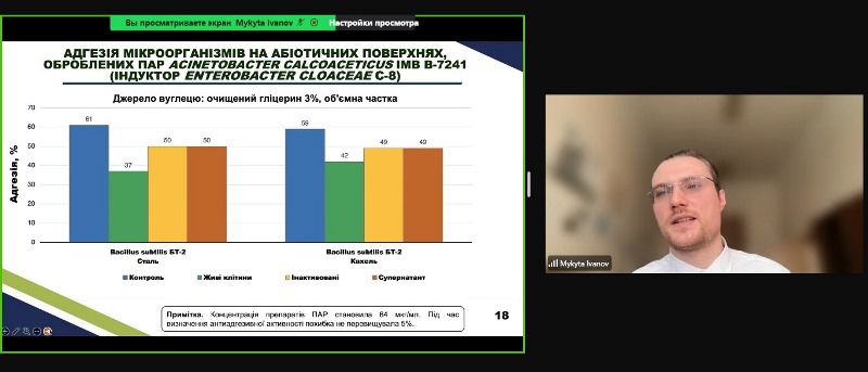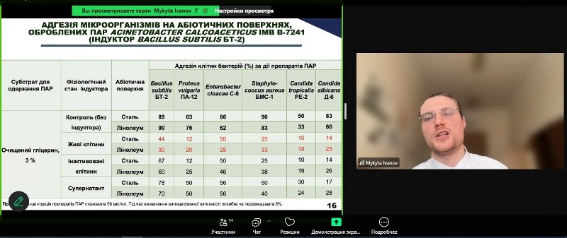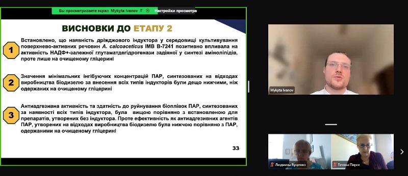 Сьогодні у разовій спеціалізованій вченій раді відбувся блискучий захист дисертації «Вплив біологічних індукторів на антимікробну та антиадгезивну активність поверхнево-активних речовин Acinetobacter calcoaceticus IМВ В-7241» випускником аспірантури кафедри біотехнології і мікробіології Микитою Івановим на здобуття ступеня доктора філософії у галузі знань 16 «Хімічна та біоінженерія» за спеціальністю 162 «Біотехнології та біоінженерія». Наукова керівниця здобувача – д.б.н., професорка Тетяна Пирог.