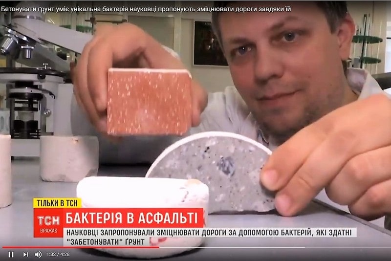 Сюжет щодо можливості реалізації на практиці технології біоцементації вийшов на телеканалі 1+1, його можна переглянути за посиланням https://www.youtube.com/watch?v=-18h1s7I_dY&t=52s.