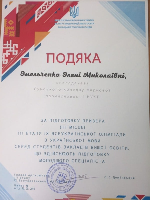 Уже дев’ятий рік поспіль в освітньому просторі України відбувається значна подія – Всеукраїнська студентська олімпіади з української мови серед закладів вищої освіти, що здійснюють підготовку за освітнім рівнем «молодший спеціаліст», яка має на меті розкриття творчого потенціалу студентської молоді, стимулювання до творчого самовдосконалення, є однією з форм популяризації української мови серед студентської молоді. Це об’єднання навколо рідного слова й культури задля розвитку і процвітання нашої держави, руху в напрямку європейської інтеграції, аби змінити нашу країну на краще.