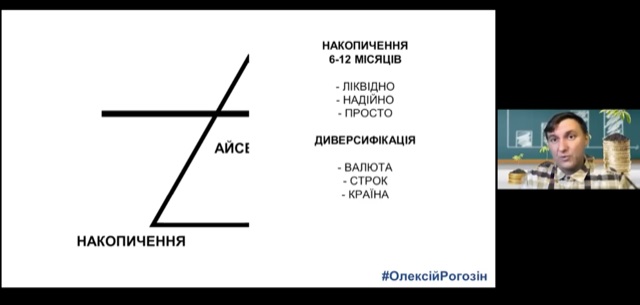 На запрошення доцентки кафедри фінансів Ганни Роганової незалежний фінансовий консультант (дипломований Британською академією MMU, акредитований у міжнародній спільноті фінансових консультантів LPG), тренер фінансової гри-тренінга Cash-Flow, інвестор Олексій Рогозін обговорював із нашими здобувачами основні положення споживчої та накопичувальної поведінки фінансово здорової людини-майбутнього інвестора у власну фінансову стабільність: актуальність формування фінансової подушки сім’ї у розмірі середньомісячних витрат за останні 6 (бажано 12) місяців; забезпечення ліквідності та доступності такої фінансової подушки; необхідність здійснювати контроль витрат і можливих імпульсивних рішень під час купівлі «зайвих» товарів, робіт і послуг; можливість і необхідність диверсифікації джерел доходів; ризики інвестування, пов’язані із фінансовою необізнаністю, шахрайством, психологічною неготовністю до інвестицій.