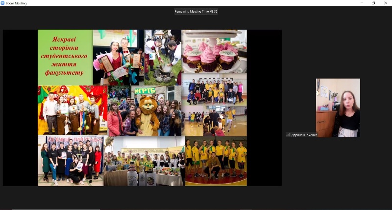 Звісно, найяскравіше представлення навчального процесу, можливостей для професійного, творчого і особистого розвитку в університеті може бути лише від студентів, тому до знайомства майбутніх вступників із факультетом долучилася Дарина Юрченко, яка лише минулого тижня успішно захистила кваліфікаційну магістерську роботу на «відмінно» (освітня програма «Технології в ресторанному господарстві») і отримала рекомендацію на отримання диплому з відзнакою. Вона щиро і яскраво згадала про неймовірні миті та події свого студентського життя, що навіть розчулила викладачів: про інститут кураторства факультету і психологічну-моральну підтримку першачків на кожному кроці під час адаптації до навчання, День першокурсника і Вечори факультетів, участь у студентських наукових конференціях і олімпіадах, Конкурсі на кращу академічну групу НУХТ, Кулінарному конкурсі й міжнародних кулінарних конкурсах у режимі онлайн під час адаптивного карантину, спортивних змаганнях, адже впродовж декількох років Дарина була капітаном волейбольної команди факультету і університету.