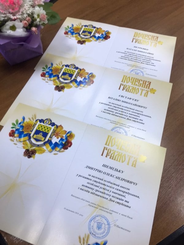 Почесні грамоти нашим студентам за активну громадську позицію, особливі успіхи у навчанні та з нагоди відзначення Міжнародного дня студента вручив виконувач обов’язків голови державної адміністрації Олександр Настасенко.