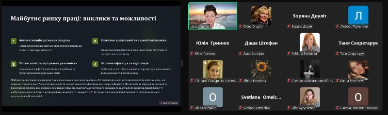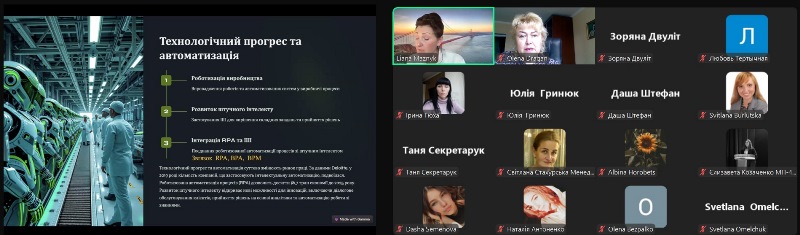 Актуальність теми, особливо для студентів напряму «Менеджмент персоналу», визначається необхідністю розуміти, як новітні технології впливають на вимоги до кваліфікації працівників, їхні кар’єрні можливості та соціально-економічні відносини. Лекторка особливо підкреслила важливість розвитку таких навичок, як цифрова грамотність, адаптивність і комунікація. Саме ці компетенції, згідно з даними LinkedIn та IBM, стають визначальними для успішної кар’єри, оскільки майже 50% працівників потребуватимуть перекваліфікації у зв’язку зі впровадженням штучного інтелекту та автоматизації.