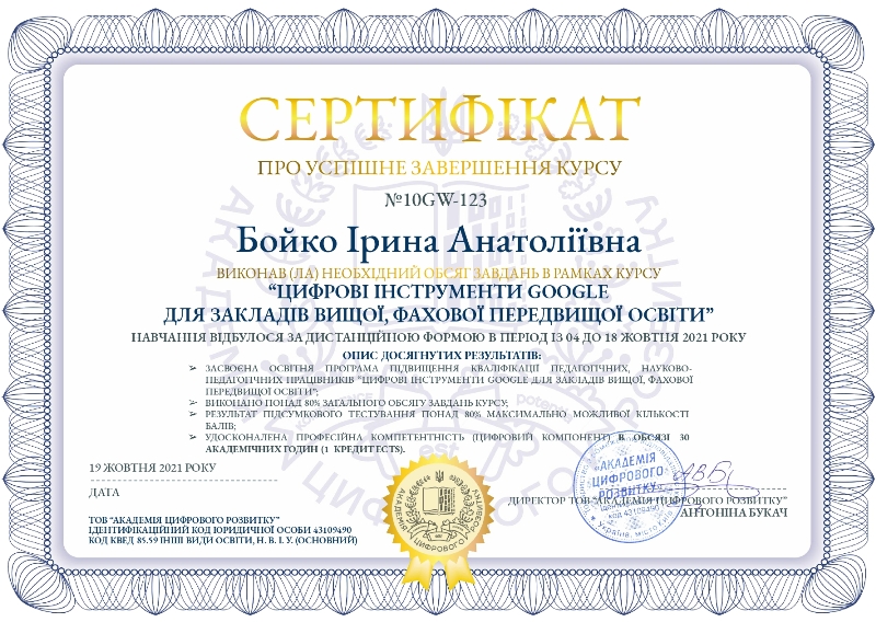 Виконавши всі вимоги, наші викладачі отримали сертифікати, але значно важливішою за цю формальну ознаку є той обсяг найсучаснішої інформації, що здатна значно прискорити і полегшити роботу в різних сферах викладацької діяльності.