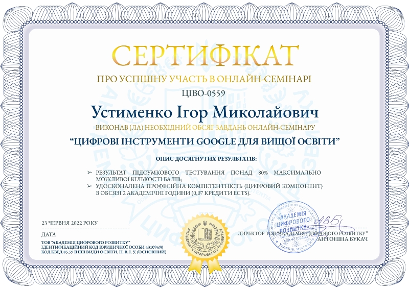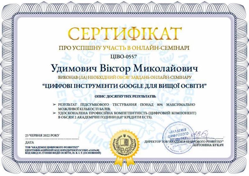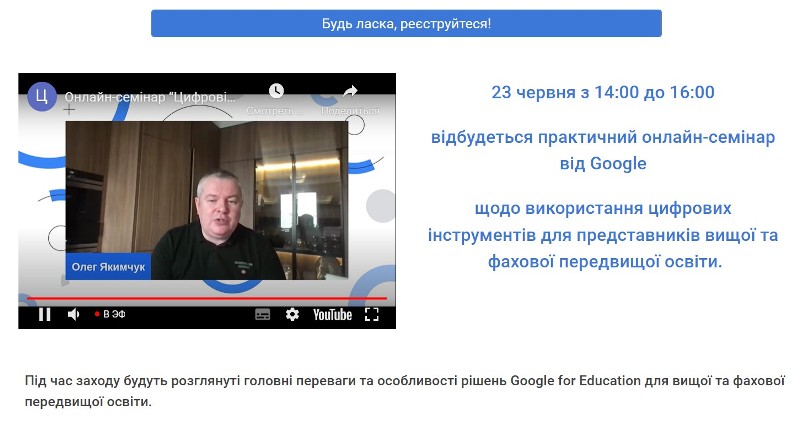 Метою семінару було ознайомлення керівних і педагогічних кадрів галузі освіти як цільової групи з перевагами та особливостями рішень Google for Education для вищої та фахової передвищої освіти, продемонструвати можливості використання цифрових інструментів Google для викладацької та наукової діяльності.