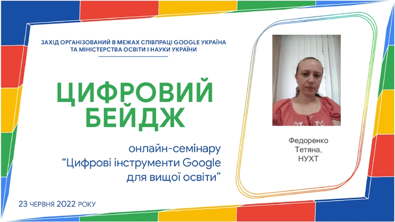23 червня 2022 року викладачі університету та коледжів НУХТ відвідали навчальні заняття «Цифрові інструменти Google для вищої освіти» у формі онлайн-семінару.