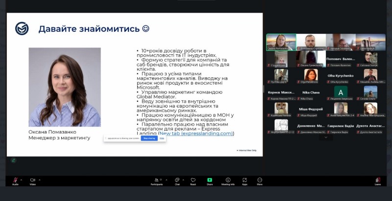 6 жовтня 2025 року відбулася зустріч здобувачів освіти спеціальностей «Економіка», «Менеджмент», «Менеджмент персоналу», «Маркетинг» освітніх ступенів «бакалавр» і «магістр» та освітньо-наукового ступеня «доктор філософії» з маркетинг-директоркою компанії Global-Mediator Оксаною Помазанко. Фахівчиня працює з усіма типами маркетингових каналів, виводить на ринок нові продукти в екосистемі «Microsoft», веде комунікацію на європейських та американських ринках і є комунікаційницею МОН у напрямку освіти дітей за кордоном.