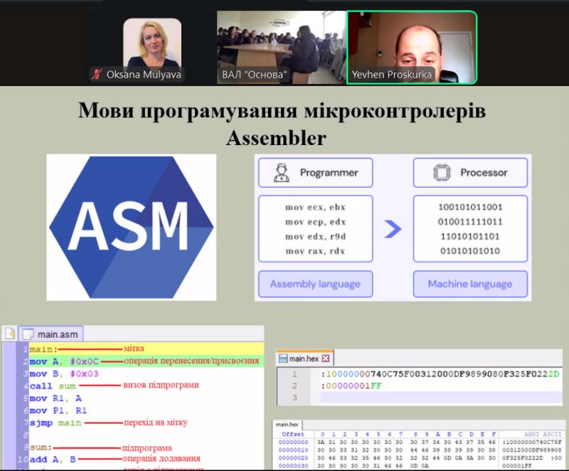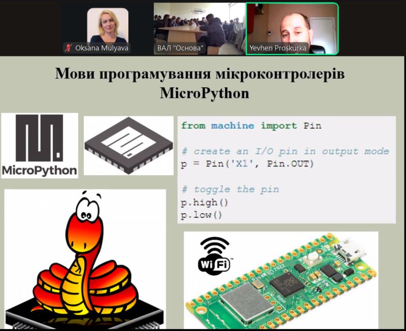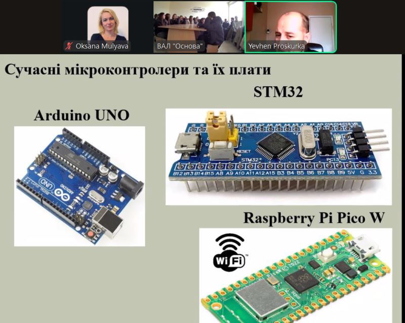 Старшокласники ліцею дізналися про виникнення та будову мікроконтролера, області застосування сучасних мікроконтролерів і мови їх програмування, а також побачили сучасні плати для розроблення пристроїв на мікроконтролерах.