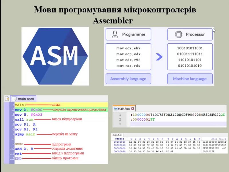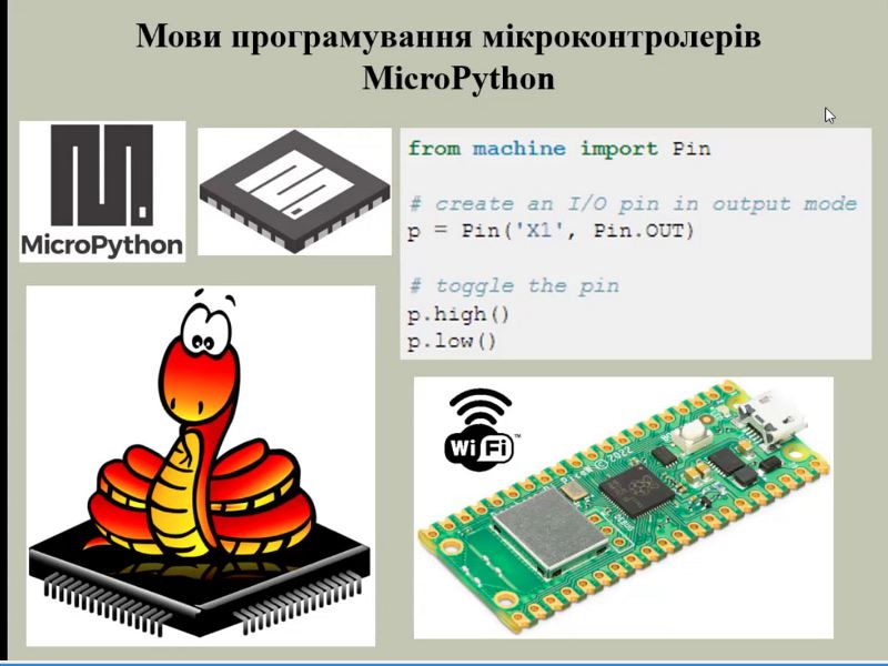 Викладач ознайомив школярів із лабораторіями кафедри, цікаво й доступно розповів про виникнення та будову мікроконтролера, навів області застосування сучасних мікроконтролерів, продемонстрував сучасні плати для розроблення пристроїв на мікроконтролерах. Також Євген Проскурка акцентував увагу учнів на мовах програмування мікроконтролерів.