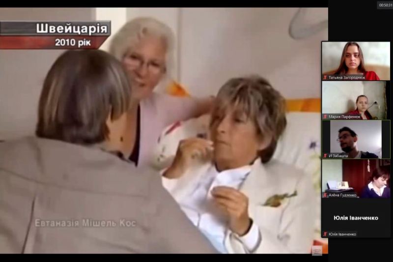 Хоча в Україні питання евтаназії поки що не стало предметом активних суспільних дискусій, уникати його обговорення чи табуювати цю тему – хибний шлях. Тож, здобувачі вищої освіти групи БТ-4-1 разом із лекторкою дисципліни «Біобезпека і біоетика» Оленою Гудзенко не могли не обговорити таку контраверсійну медичну процедуру, як евтаназія.