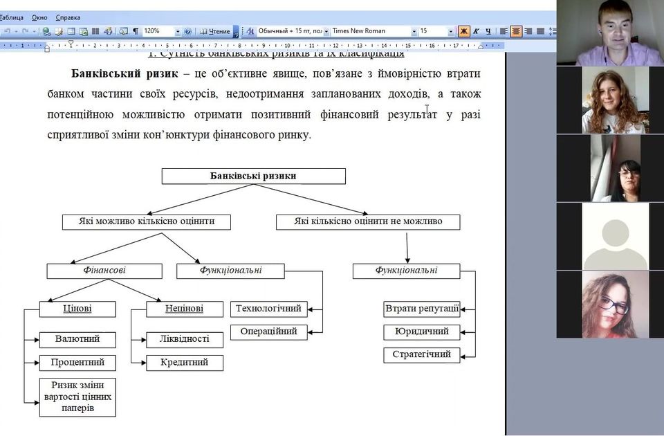 Здобувачі освіти дізналися про сутність банківських ризиків та їх класифікацію, про те, як проводиться аналіз валютного ризику банку, аналіз процентного ризику банку, здійснюється оцінювання ризику активів банку з використанням економіко-математичного моделювання.
