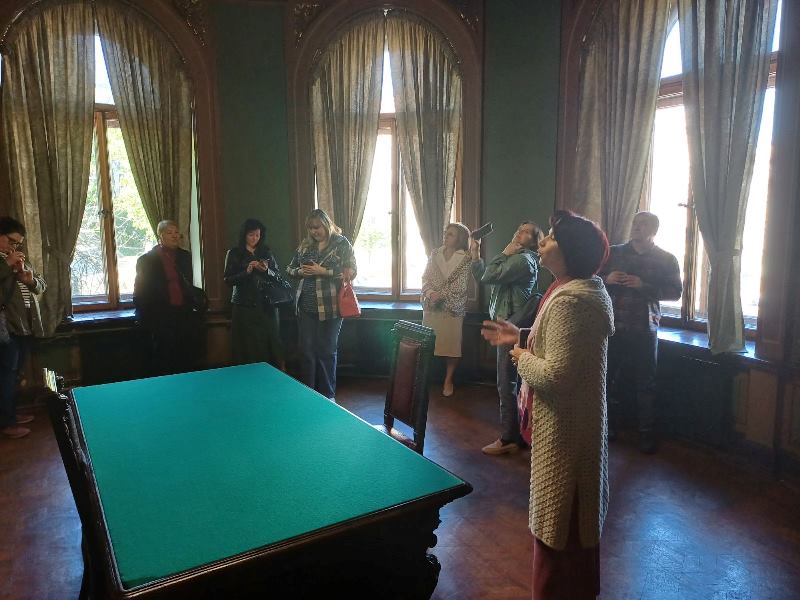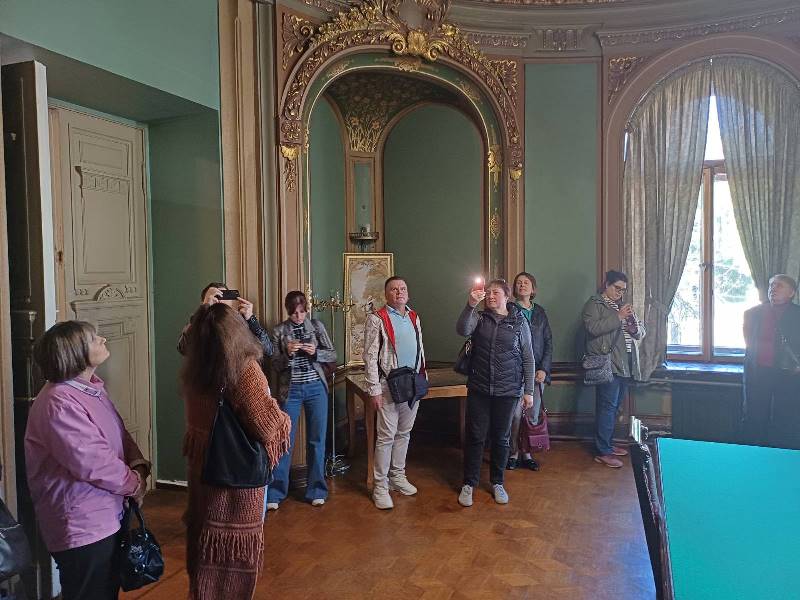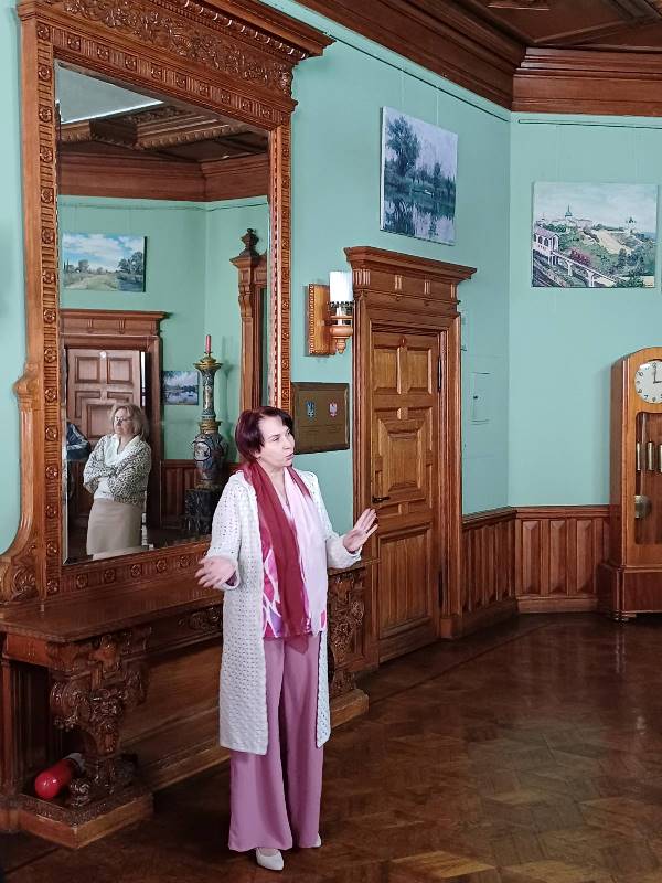 Наші екскурсанти дізналися багато цікавого з розповідей екскурсоводки й досхочу намилувалися чудовими інтер’єрами. А ще мали змогу побачити картину «Балерина і сонце» колишнього співробітника університету Миколи Черниша. Вони щиро вдячні профкому НУХТ за екскурс в історію!