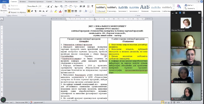 Члени робочих груп обговорили результати аналізу освітніх програм після зустрічей зі стейкхолдерами, формування SWOT-аналізу програм, потенційні можливості для ліквідації слабких сторін та попередження впливу загроз.