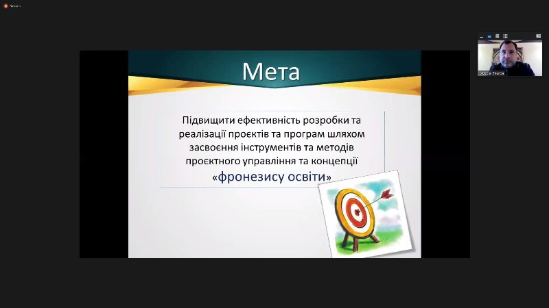 Метою стажування було сформувати у слухачів загальне уявлення щодо проєктного менеджменту та практичні навички розроблення власних освітніх проєктів. Очікувані результати стажування – набуття навиків пошуку грантів в інформаційному середовищі, їх аналіз і класифікація; розроблення власної документації; структуроване та цілісне уявлення щодо організації проєктного менеджменту в закладі освіти.