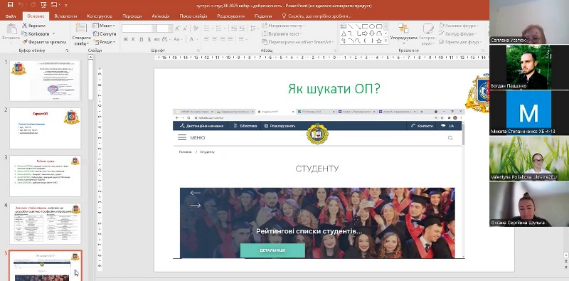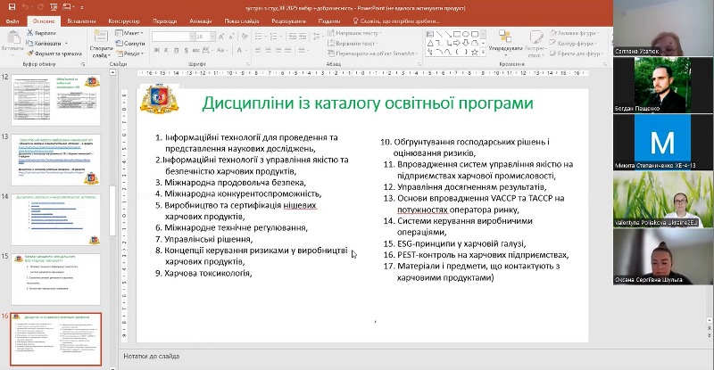 Викладачі випускової кафедри презентували свої вибіркові дисципліни, а гарантка надала інформацію про посилання для ознайомлення з їхнім описом і пояснила процедуру вибору дисциплін в електронному кабінеті здобувача.