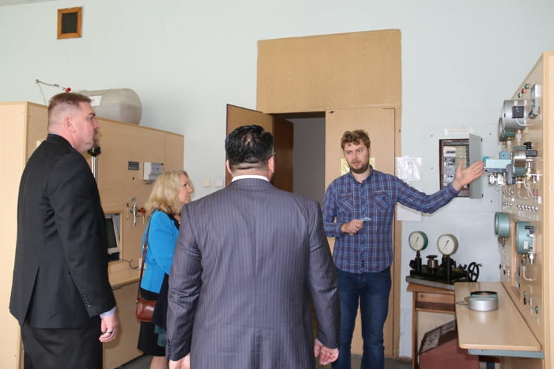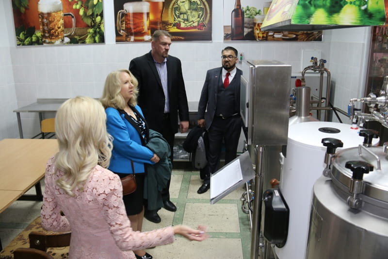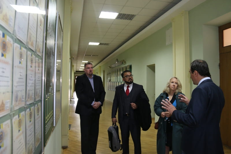 Гості зустрілися з ректором нашого університету Анатолієм Українцем і проректором з наукової роботи Олександром Шевченком. У ході спілкування вони дізналися про славну історію і сьогодення нашого навчального закладу, його структуру й спеціальності, за якими здійснюється підготовка спеціалістів, коло наукових інтересів наших фахівців, позиції, що займає НУХТ у рейтингах незалежних експертів. У свою чергу американські фахівці розповіли про свій університет і мету свого візиту в Україну – вони дуже зацікавлені у співпраці з такими потужними профільними вишами, як наш. З-поміж українських закладів вищої освіти їх зацікавили лише два – Національний університет харчових технологій і Національний технічний університет України «Київський політехнічний інститут ім. Ігоря Сікорського».