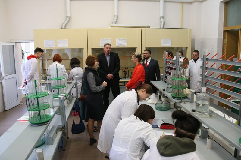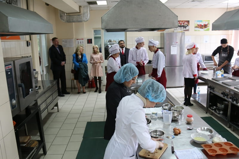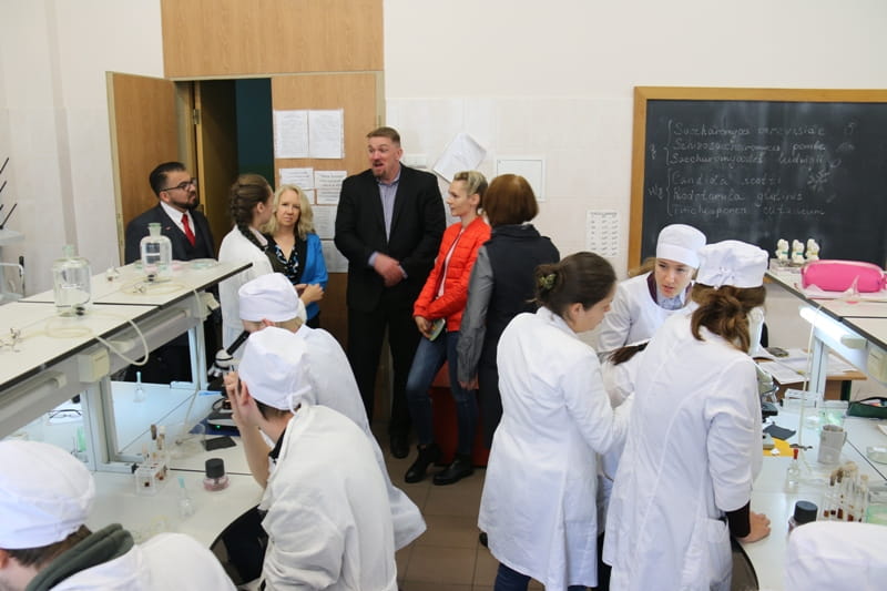 У ході візиту до НУХТ американські колеги побували на кафедрах біотехнології і мікробіології, інтегрованих автоматизованих систем управління, процесів і апаратів харчових виробництв, на факультеті готельно-ресторанного та туристичного бізнесу. Вони активно цікавилися організацією навчального процесу, задавали багато питань стосовно залучення до наукової роботи студентів, захисту об’єктів інтелектуальної власності, впровадження розробок наших фахівців у виробництво. Також гості багато спілкувалися з нашими студентами, які продемонстрували не лише високий рівень знань зі своїх майбутніх спеціальностей, але й дуже пристойний рівень володіння англійською мовою, вільно і впевнено відповідаючи на численні запитання американських освітян.