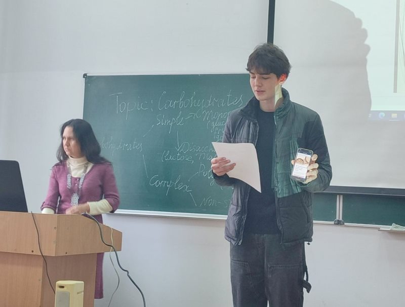 Під час заняття студенти опрацювали професійну лексику, прочитали і обговорили текст про вуглеводи, їхню роль у харчуванні і основні типи – прості і складні вуглеводи.