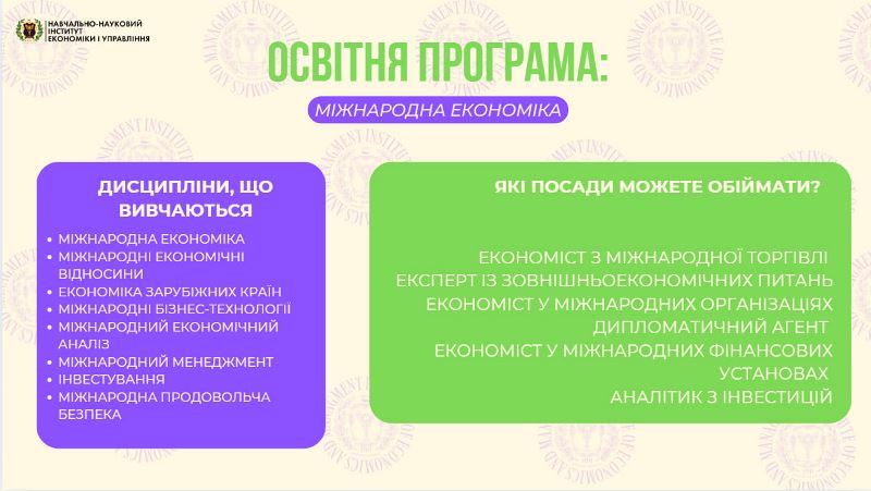Відповідальна за профорієнтаційну роботу, старша викладачка кафедри маркетингу Ірина Ніколаєнко із захопленням розповіла про унікальні можливості навчання в інституті, переваги кожної з 11 освітніх програм, їх перспективи та реальну користь для побудови успішної кар’єри.