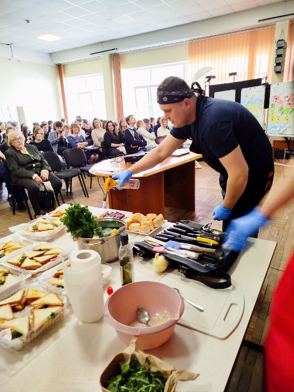 А завершився день смачно завдяки демонстраціям приготування та оформлення сендвічів, тостів і бутербродів, а також дегустації для всіх присутніх в актовій залі навчального закладу від представників факультету готельно-ресторанного та туристичного бізнесу імені проф. В.Ф. Доценка. Доцентка, к.т.н. Наталія Стукальська, старша викладачка Олена Матиящук та здобувачі-бакалаври 3 і 4 курсу освітньо-професійної програми «Технології харчування» (спеціальність 181 «Харчові технології») Дмитро Бертош, Микола Литвинов, Дмитро Фастовецький і Вікторія Салата поділилися практичними навичками й секретами естетики подання страв.