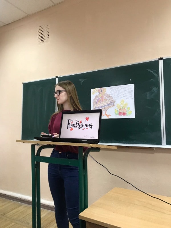 Студенти Аліна Рябко, Інна Тремасова, Марина Дячишина, Олександра Родіна, Анастасія Соловей, Каріна Тарасенко, Настя Торохтій, Злата Тудуй, Поліна Матюша, Ганна Козацька, Аліна Надводнюк та інші підготували цікаві відеопрезентації про історію свята, традиції святкування, традиційні страви та напої, що готують і подають цього дня. Завершилося свято чаюванням із гарбузовим пирогом, який є одним із символів Дня Подяки.