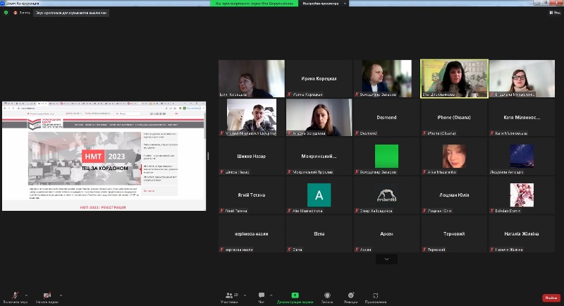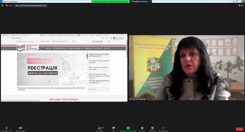 На онлайн-зустрічі майбутні абітурієнти отримали детальну інформацію від деканки факультету Віти Цирульнікової стосовно вибору майбутньої професії, реєстрації на мультипредметний тест у 2023 році та основні інформації ресурси для абітурієнтів.