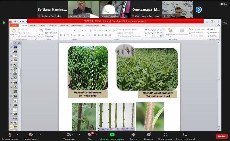 А заступник директора з наукової роботи Національного ботанічного саду імені М. Гришка, професор Джамал Рахметов повів усіх слухачів у чарівний світ вітчизняної флори, презентуючи нові сорти різноманітних овочевих і зеленних культур, а також привертаючи увагу до забутих рослинних дарів, таких, наприклад, як амарант. Ця уявна екскурсія Ботанічним садом зацікавила усіх учасників конференції, і потім протягом дискусії багато з них зізналися, що у них виникли нові ідеї, яким чином раціонально використати розробки Ботанічного саду у технологіях оздоровчих продуктів.