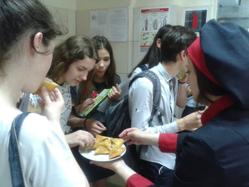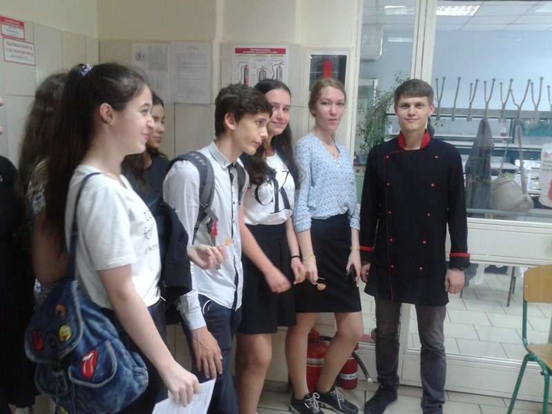 А потім, покуштувавши карамелі, молодь направилася на факультет готельно-ресторанного та туристичного бізнесу, де їх зустріла асистент кафедри технології ресторанної і аюрведичної продукції Анна Пастух. Вона провела учнів лабораторіями, показала роботу міні-броварні, розповіла про увесь спектр освітніх пропозицій, матеріально-технічне забезпечення навчального процесу, організацію студентського дозвілля. Екскурсанти подивились, як проходять лабораторні заняття, а студенти з радістю пригостили наших гостей чебуреками, виготовленими щойно. У цілому склалося враження, що факультет живе одною дружною сім’єю.