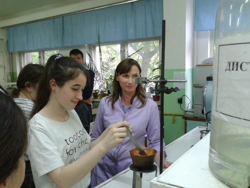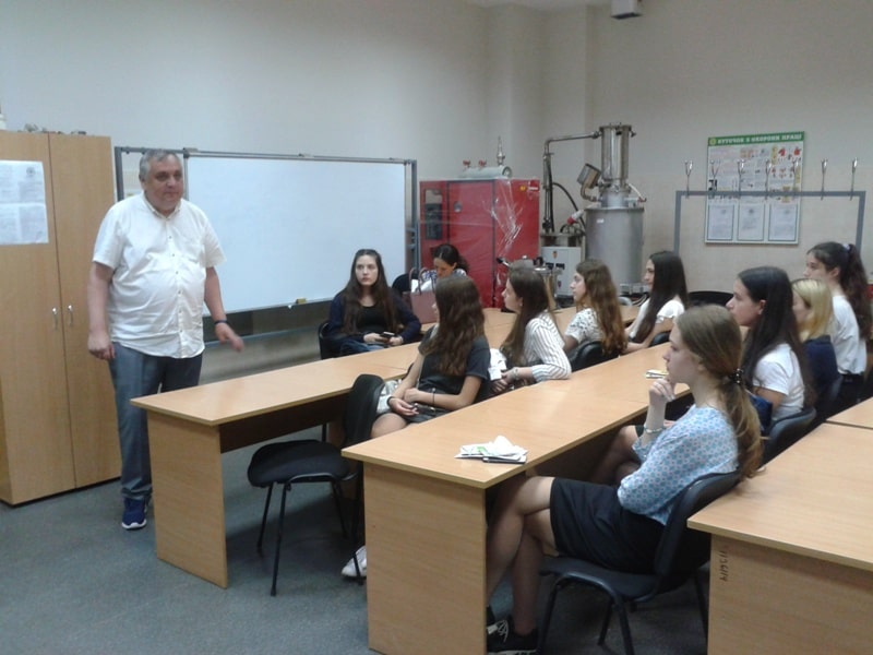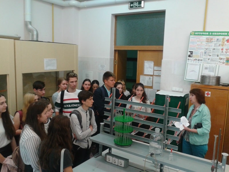 На кафедрі біотехнології і мікробіології разом із доцентом Вікторією Красінько школярі подивилися жартівливий відеоролик, знятий старшокурсниками-мікробіологами про «нелегке» студентське житті, пройшлися навчально-науковими лабораторіями, побачили в мікроскопах комах, жуків.