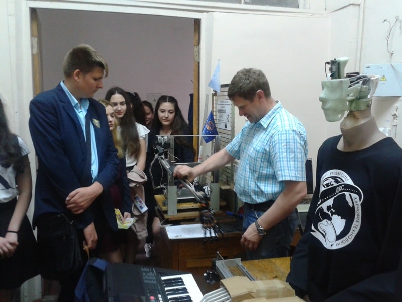 Доцент кафедри інтегрованих автоматизованих систем управління Віктор Сідлецький ознайомив молодь із лабораторіями факультету автоматизації і комп’ютерних систем і продемонстрував, як функціонує робот-піаніст.