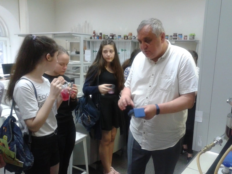 А наприкінці, на кафедрі технології консервування професор Віталій Шутюк разом із доцентом Оксаною Точковою продемонстрували, як працюють ротаційні випарювачі. Віталій Шутюк розповів про наукову роботу кафедри, фахівців для яких галузей готує, з якої сировини, наприклад, готуються соки та багато іншого. Тут молодь могла продегустувати створене фахівцями кафедри і студентами желе.