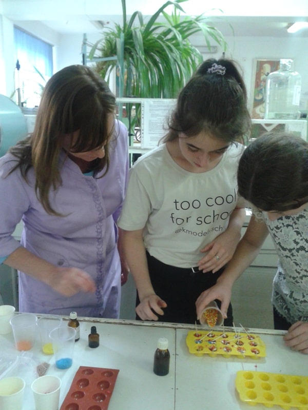 Спочатку за безпосередньої участі школярів на кафедрі технології хлібопекарських і кондитерських виробів доцент Юлія Камбулова провела майстер-клас по виготовленню льодяникової карамелі. Юнаки та дівчата власноруч варили, розливали по формах і прикрашали свої творіння. А поки карамель остигала, доцент Валерій Махинько розповів про історію кафедри, який виповнюється в цьому році 70 років, фахівців яких галузей вона випускає, чому роботодавці віддають перевагу випускникам саме нашого університету та багато іншого, що треба знати при виборі вищого навчального закладу майбутнім вступникам.