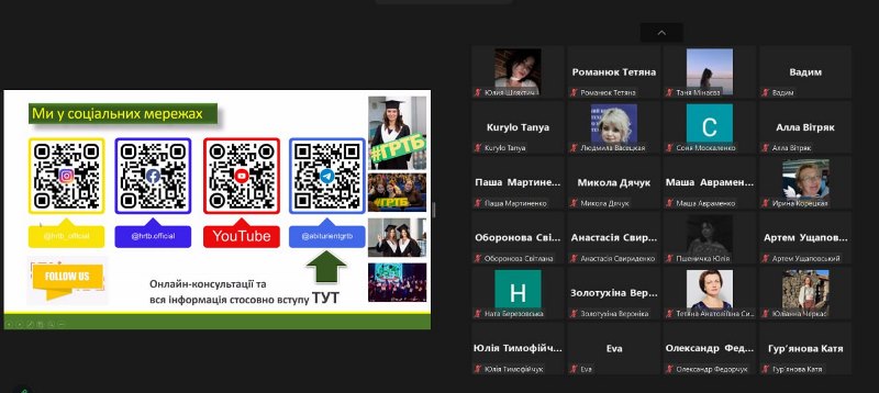 Завершилося діджитал-знайомство з факультетом ГРТБ імені професора В.Ф. Доценка інформацією про особливості проведення і складання національного мультипредметного тесту (НМТ) і запрошенням на День вступника офлайн, який відбудеться уже 20 квітня, від деканки Віти Цирульнікової.