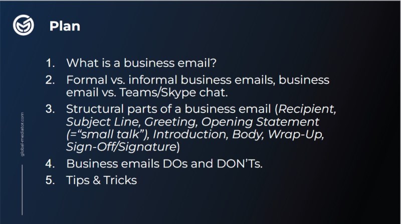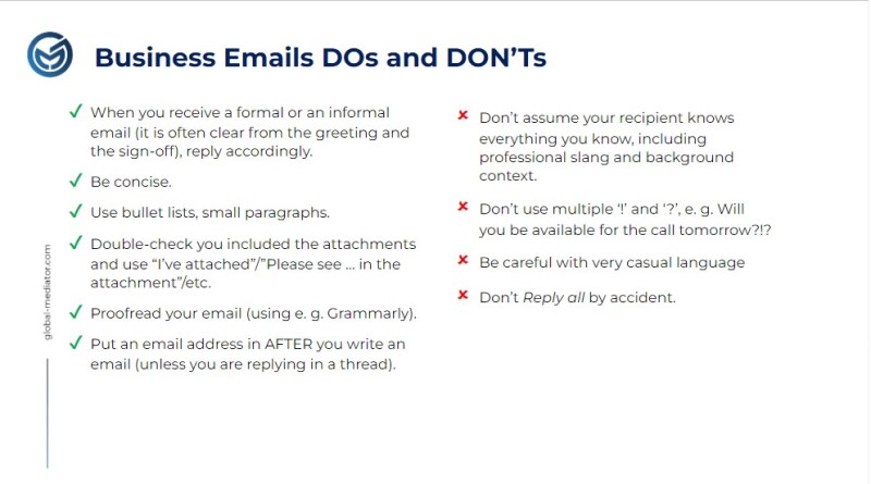 Лекторка розповіла про ознаки ділового спілкування, особливості електронного спілкування англійською мовою, розкрила основні задачі, на розв’язання яких спрямоване ділове листування. Фахівчиня наголосила на необхідності уникати у діловому спілкуванні певних помилок, що можуть негативно вплинути на ефективність комунікації та взаємини. А також навела приклади форм і форматів листів, необхідних реквізитів, стилів викладу інформації, змісту, стандартів оформлення, загальноприйнятих скорочень.
