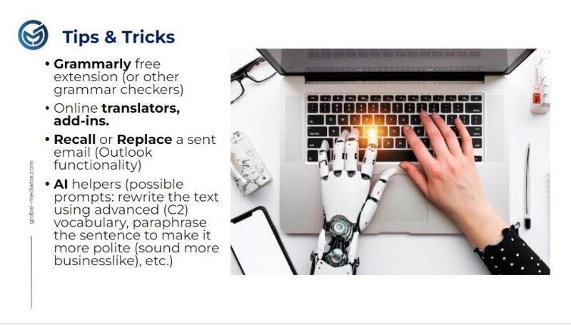 Спікерка ґрунтовно роз’яснила, які сучасні інструменти інформаційних технологій та зокрема штучний інтелект можуть стати у нагоді при діловому листування.