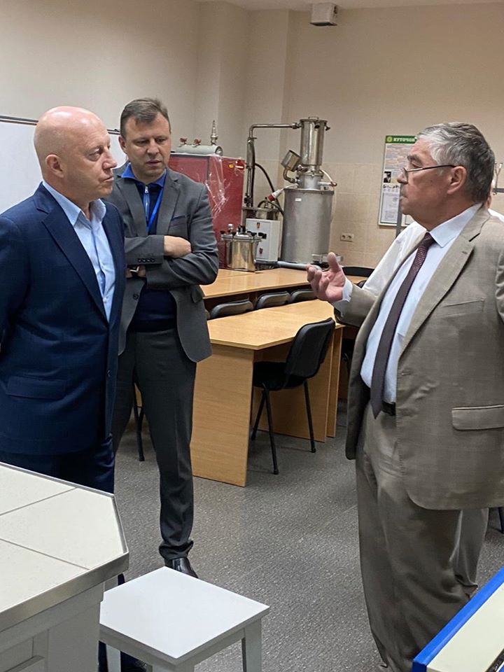 У ході візиту посадовець поспілкувався з в.о. ректора, першим проректором, професором Володимиром Яровим і проректором з навчально-виробничої діяльності та розвитку, професором, завідувачем кафедри технології консервування, заслуженим працівником освіти України Олександром Бессарабом. Під час розмови йшлося про діяльність закладів освіти в умовах пандемії, проблемні питання господарської діяльності вишів, плани щодо співпраці університету та адміністрації району.