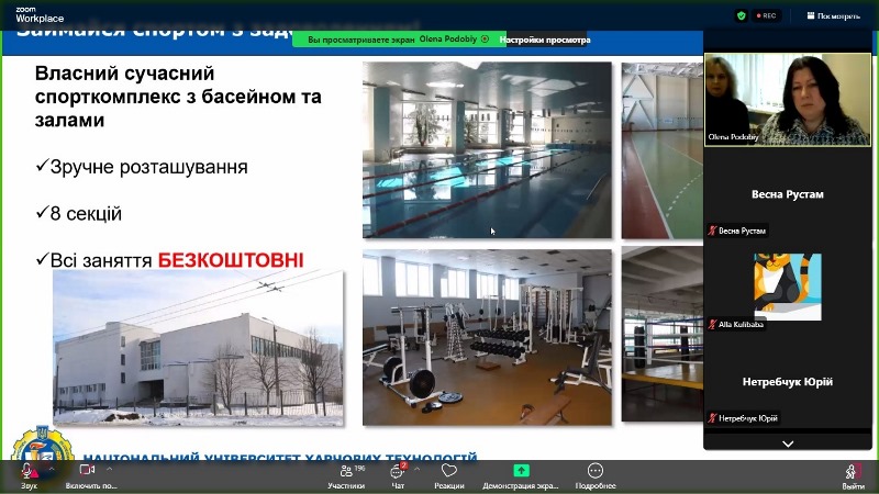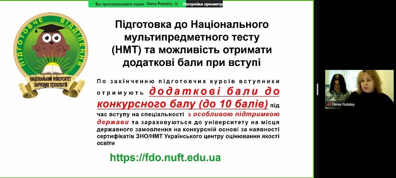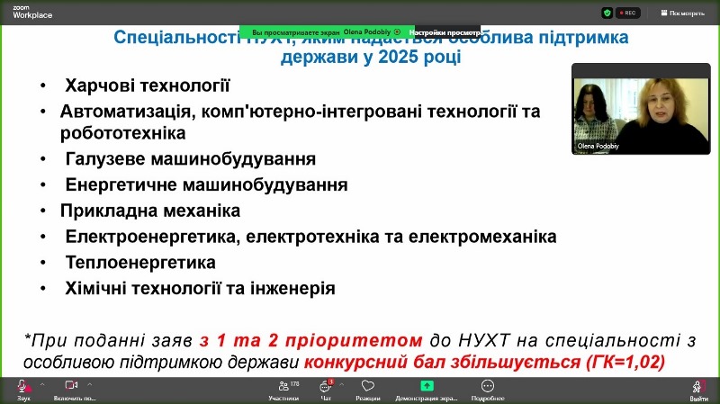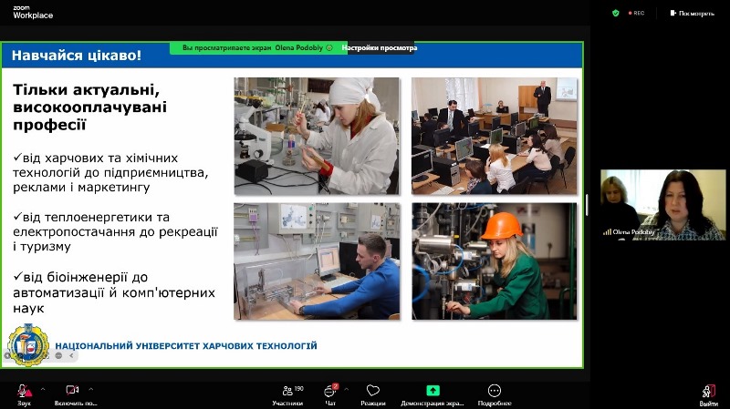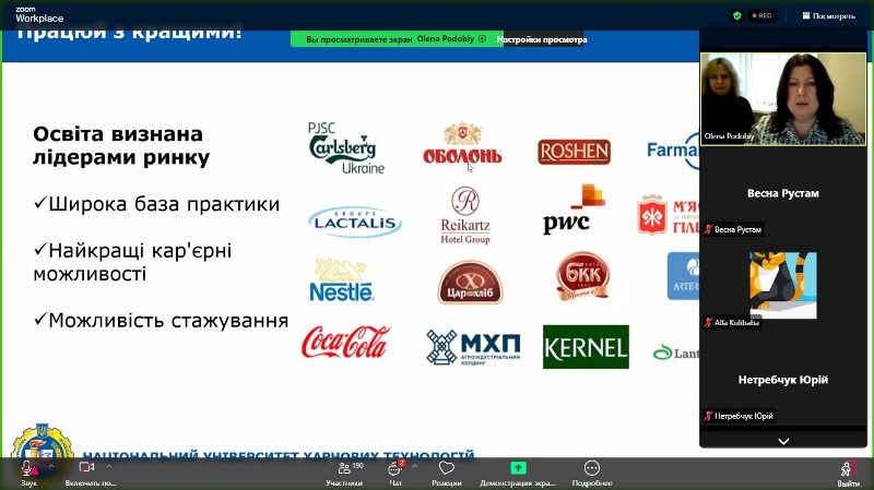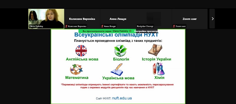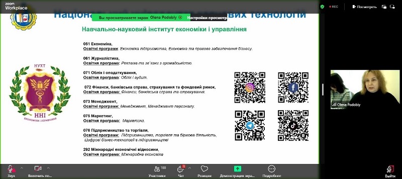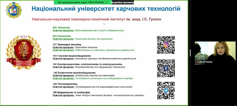 Зокрема від Олени Подобій учасники зустрічі дізналися про увесь спектр діяльності НУХТ – його 140-річну історію підготовки висококваліфікованих фахівців, затребуваність наших випускників на ринку праці, активну співпрацю зі стейкхолдерами, потужну підтримку роботодавців, міжнародне співробітництво, неймовірно широке коло можливостей для навчання і розвитку наших здобувачів освіти. Слухачі почули про 25 спеціальностей та 32 освітні програми університету, розроблені на основі вивчення та застосування кращих європейських практик. Директорка Центру акцентувала увагу на постійному їх розвитку, оновленні й започаткуванні нових – у минулому році в університеті було відкрито чотири нові освітньо-професійні програми, в цьому навчальному році – дві. При цьому обов’язково враховується думка здобувачів освіти та стейкхолдерів.