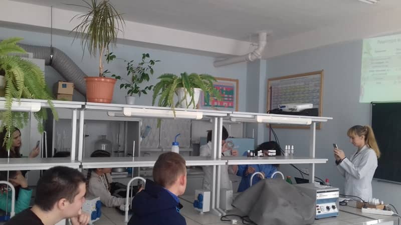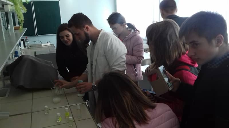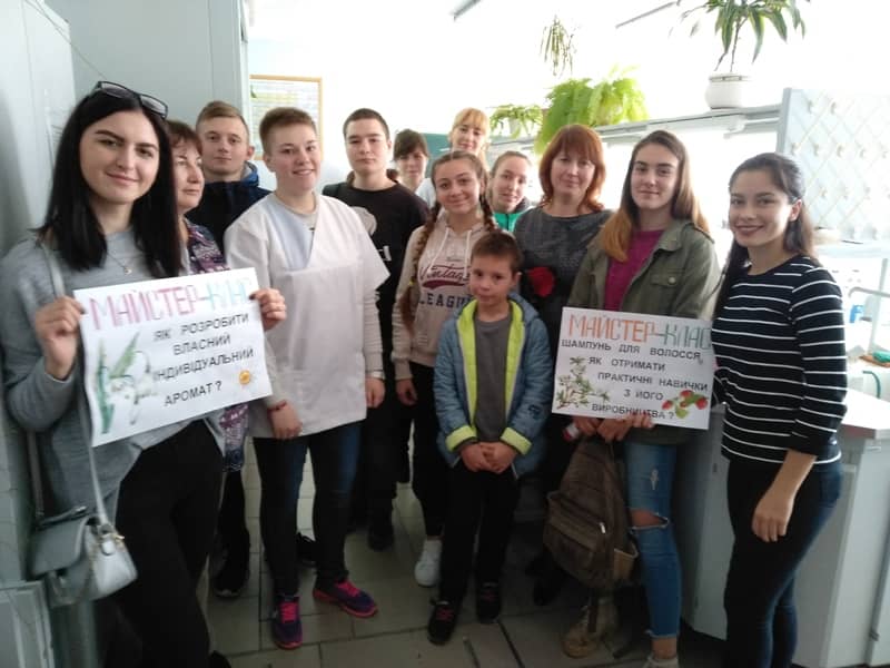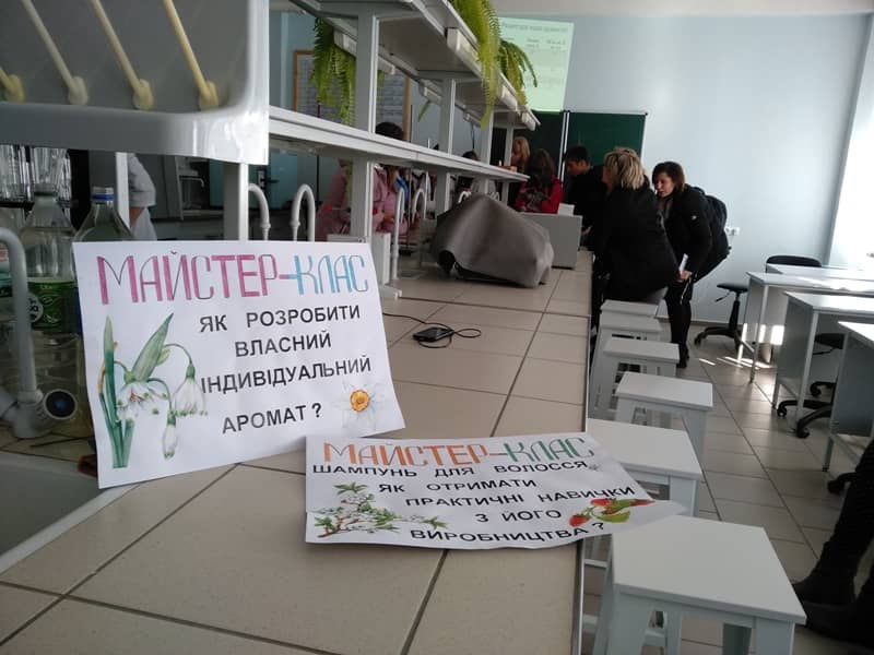Для випускників шкіл студенти та магістранти провели майстер-класи «Як розробити власний індивідуальний аромат» і «Шампунь для волосся – практичні навички». У доступній формі були продемонстровані цікаві досліди з отримання парфумів та інших косметичних засобів.