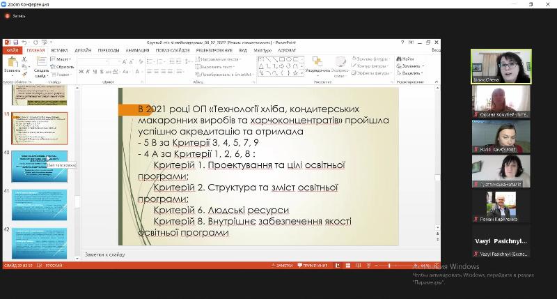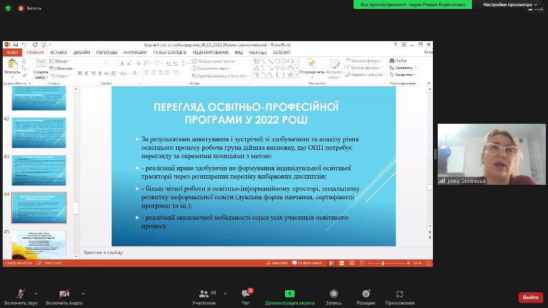 Далі слово було надане гарантам освітніх програм освітніх ступенів «Магістр» і «Доктор філософії», які представили свої освітні програми, розкрили їх унікальність, фокус та особливість підготовки здобувачів, коротко надали інформацію щодо тих частин програми, які є визначальними у формуванні компетентностей та результатів навчання, зупинилися на досягненнях здобувачів, випускників освітніх програм і науково-педагогічного складу кафедр.