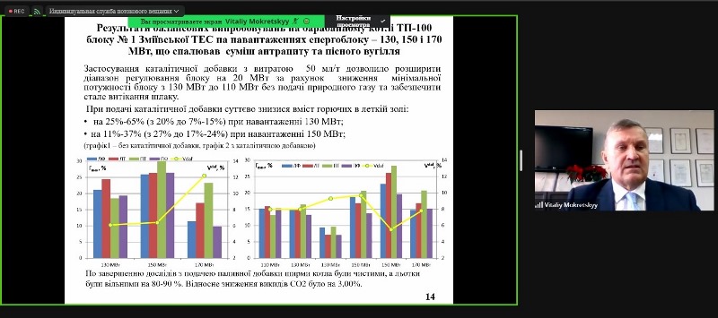 Робота Віталія Мокрецького присвячена дослідженню впливу подання каталітичної паливної добавки REDUXCO, яка є джерелом вільних радикалів, на зростання ефективності роботи факельних і колосникових котлів й інших теплоенергетичних установок (клінкерних печей, двигунів внутрішнього згоряння) та розроблення методу оцінювання і прогнозування викидів діоксиду вуглецю за даними технічного аналізу палива.