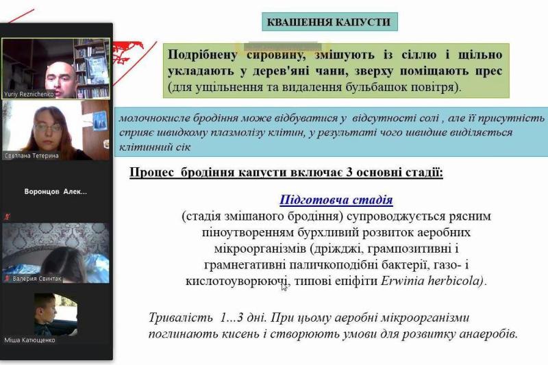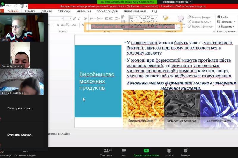 Лекція, присвячена темі «Використання мікроорганізмів в харчовій промисловості», була вдало проілюстрована мультимедійною презентацією та розпочалася з повторення матеріалу минулого заняття. Тема заняття виявилася надзвичайно цікавою для студентів, адже мова йшла про продукти, які складають основу нашого щоденного раціону.