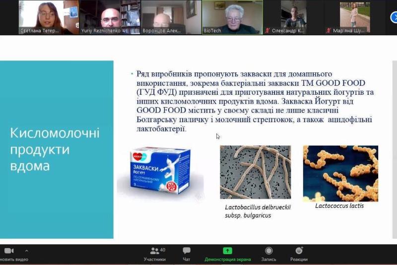 Юрій Резніченко доступно розповів про функціональну роль деяких мікроорганізмів у виробництві харчових продуктів, навів їх основі характеристики, а також оптимальні умови застосування. Лектор постійно підтримував діалог зі студентами, акцентував увагу на суттєвих моментах.