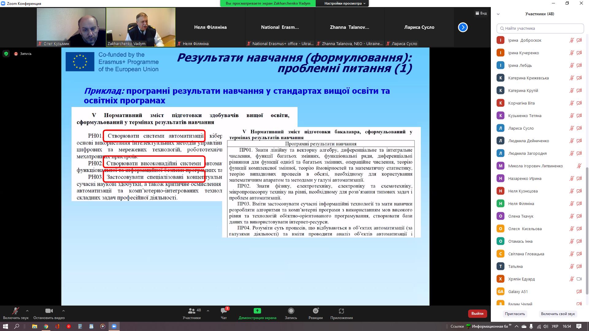 Спікер розповів про особливості написання освітніх програм, їх вітчизняну та міжнародну акредитацію. Зокрема, учасники семінару розглянули: загальні питання до забезпечення фахової підготовки у освітніх програмах, забезпечення результатів навчання, специфіку «регульованих» професій, присвоєння професійних кваліфікацій.